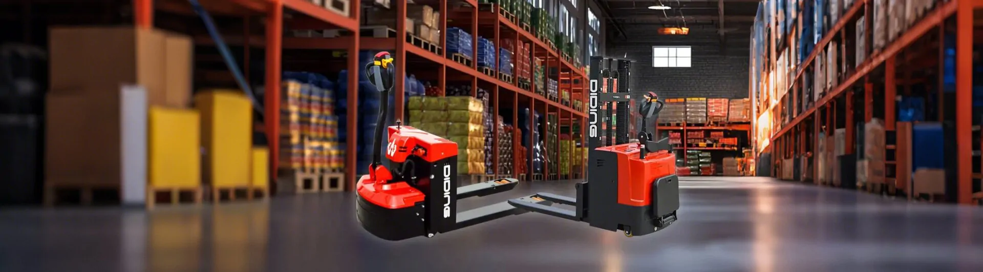 DIDING's pallet truck, pallet stacker or forklift Delivering product to its final retail destination comes with a set of difficulties as varied as the products on your pallets. Narrow passages, tight corners, and rough pavement are everyday obstacles those in the retail industry have to overcome. The sorts of changes you need to improve your delivery operation depend on your unique circumstances. By working with a DIDING authorized Dealer, you can find the best equipment to help overcome your retail challenges.